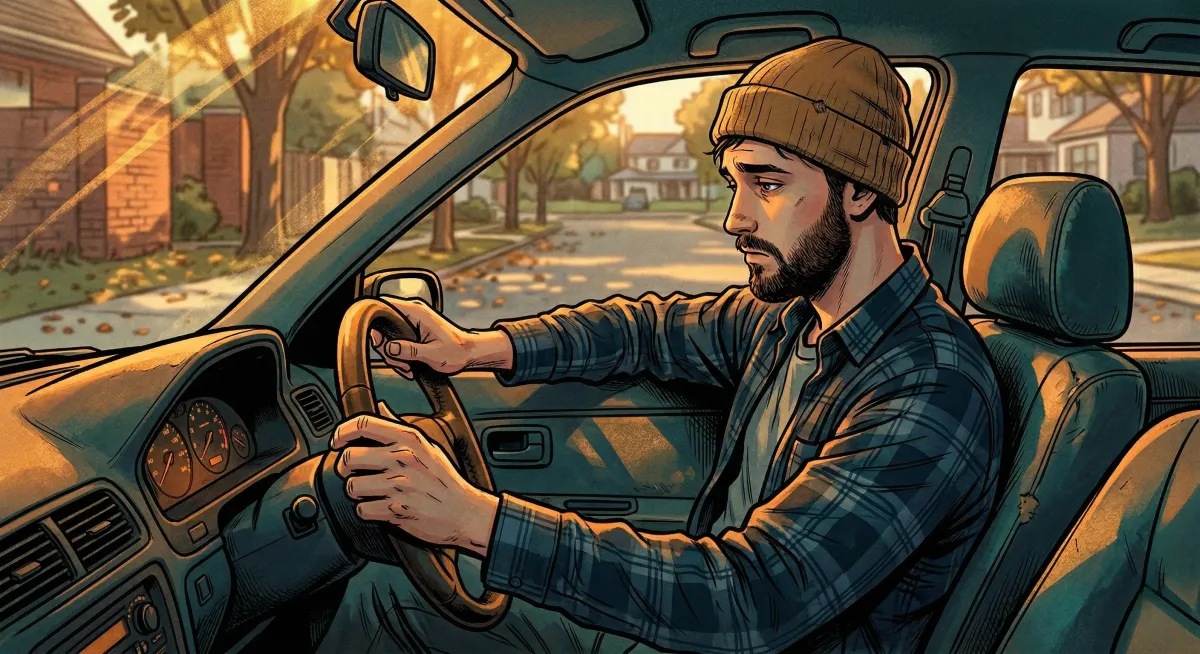 Pulled into the driveway. Sitting there. Tension is already back before the engine's even off.